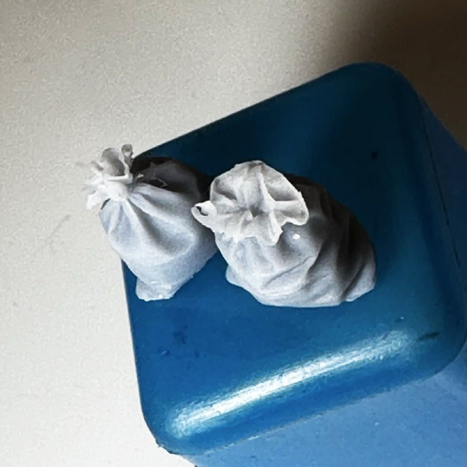 Model of a late 1800s/early 1900s baggage scale. Comes with burlap bags.